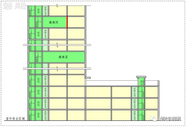 常見(jiàn)的室內(nèi)安全區(qū)域,主要有疏散樓梯間及前室、避難層、避難間、避難走道及前室,等等。
