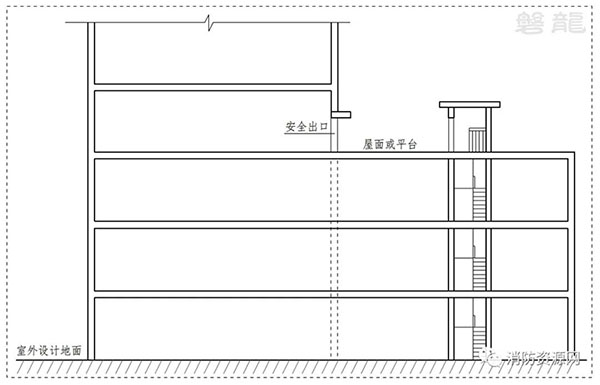 作為室內(nèi)安全區(qū)域的上人屋面或平臺(tái),可作為樓層的安全疏散出口,其功能與通向疏散樓梯間的安全出口類似。