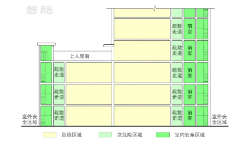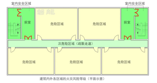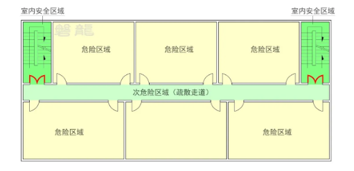 (2)次危險(xiǎn)區(qū)域:疏散走道;