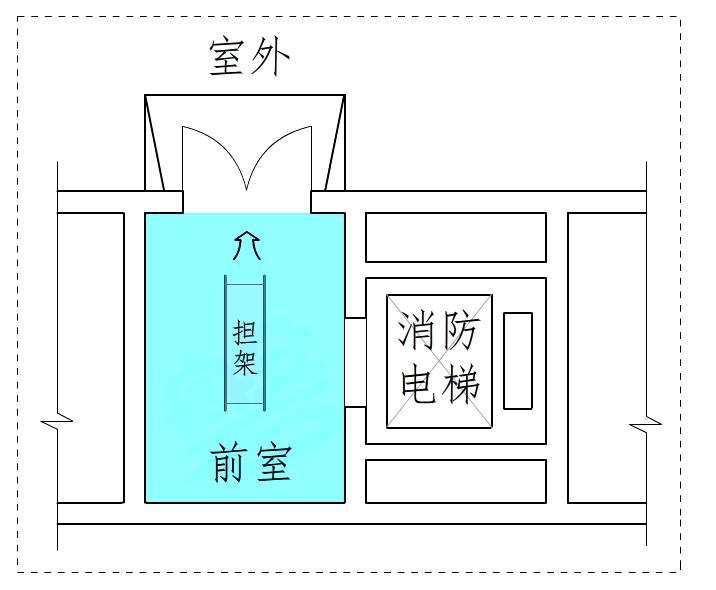 通常情況下,擔架救援需要通過消防電梯完成,規(guī)范要求消防電梯前室短邊凈尺寸不小于2.4m,就是考慮擔架救援需要。