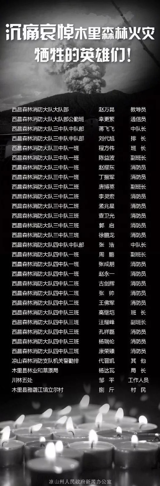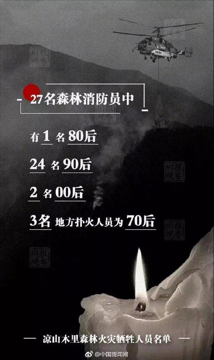 3月30日17時(shí)許,四川省涼山州木里縣雅礱江鎮(zhèn)立爾村發(fā)生森林火災(zāi)。31日,在撲火行動(dòng)中,受風(fēng)力風(fēng)向突變影響,突發(fā)林火爆燃,目前已造成27名森林消防隊(duì)員和3名地方干部群眾犧牲。