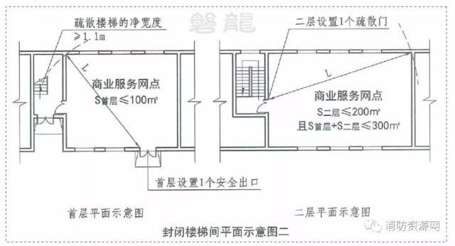 九、商業(yè)服務(wù)網(wǎng)點(diǎn)可以設(shè)置直通室外的封閉樓梯間,以此解決二層疏散距離不夠的問題。(5.4.11圖示4,P102)