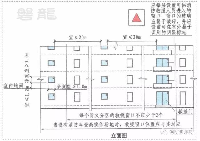三十二、消防救援窗要求建筑四面布置,不僅僅是對(duì)應(yīng)消防車登高操作場地。(7.2.5圖示1 P206)