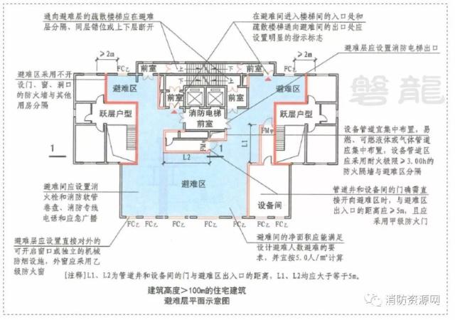 四十一、住宅建筑的避難層,除避難間外的其他房間,可以設(shè)置為設(shè)備間和躍層戶型。(5.5.31圖示)