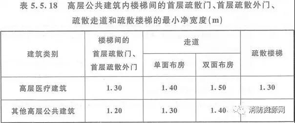 附1:《建規(guī)》5.5.30: 住宅建筑的戶門、安全出口、疏散走道和疏散樓梯的各自總凈寬度應(yīng)經(jīng)計(jì)算確定,且戶門和安全出口的凈寬度不應(yīng)小于0.90m,疏散走道、疏散樓梯和首層疏散外門的凈寬度不應(yīng)小于1.10m。建筑高度不大于18m的住宅中一邊設(shè)置欄桿的疏散樓梯,其凈寬度不應(yīng)小于1.0m。附2:《建規(guī)》5.5.18: 除本規(guī)范另有規(guī)定外,公共建筑內(nèi)疏散門和安全出口的凈寬度不應(yīng)小于0.90m,疏散走道和疏散樓梯的凈寬度不應(yīng)小于1.10m。高層公共建筑內(nèi)樓梯間的首層疏散門、首層疏散外門、疏散走道和疏散樓梯的最小凈寬度應(yīng)符合表5.5.18的規(guī)定。