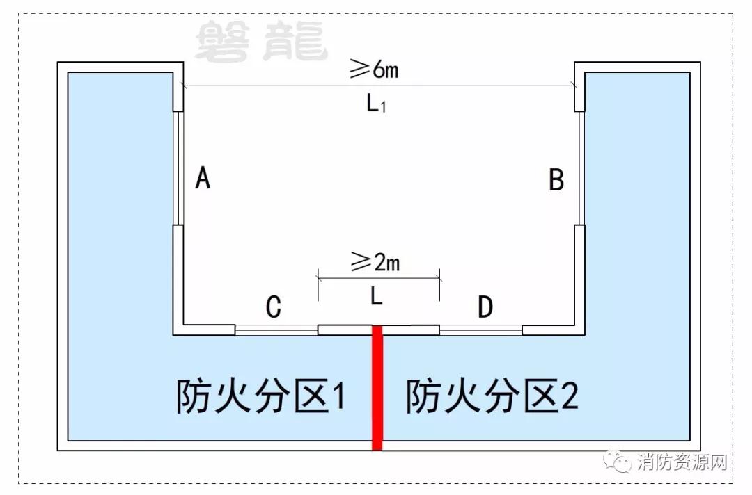 一、對(duì)于只需要采用防火隔墻分隔的兩個(gè)區(qū)域,處于迎火面的門(mén)窗洞口,通常需要保證6m的防火間距,處于側(cè)火面的門(mén)窗洞口,通常僅需保證1m的防火間距。