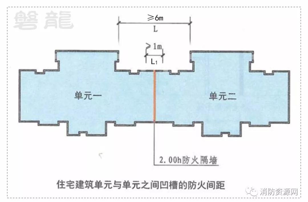 1、示例2的住宅,兩個(gè)單元之間L≥6m,L1≥1m。