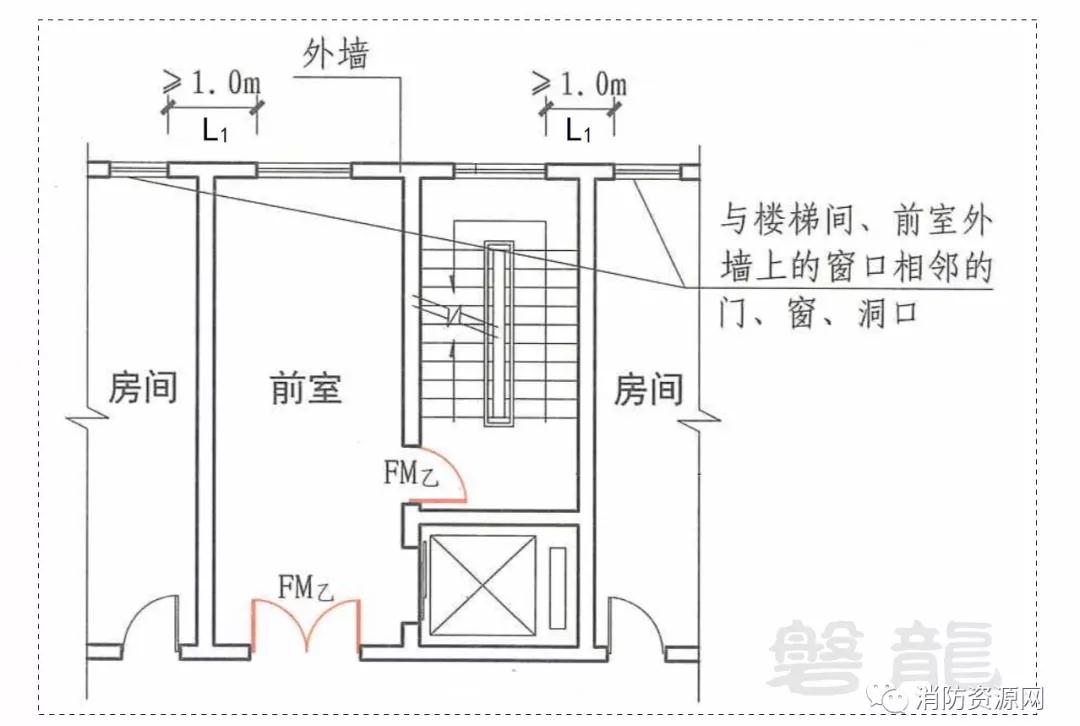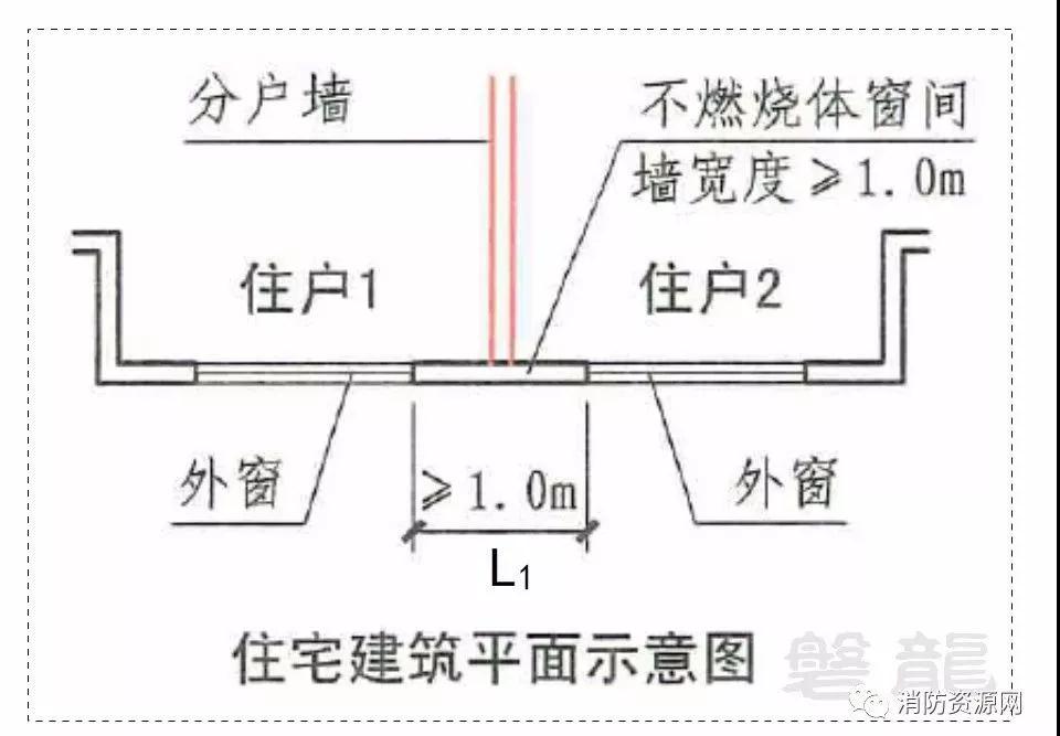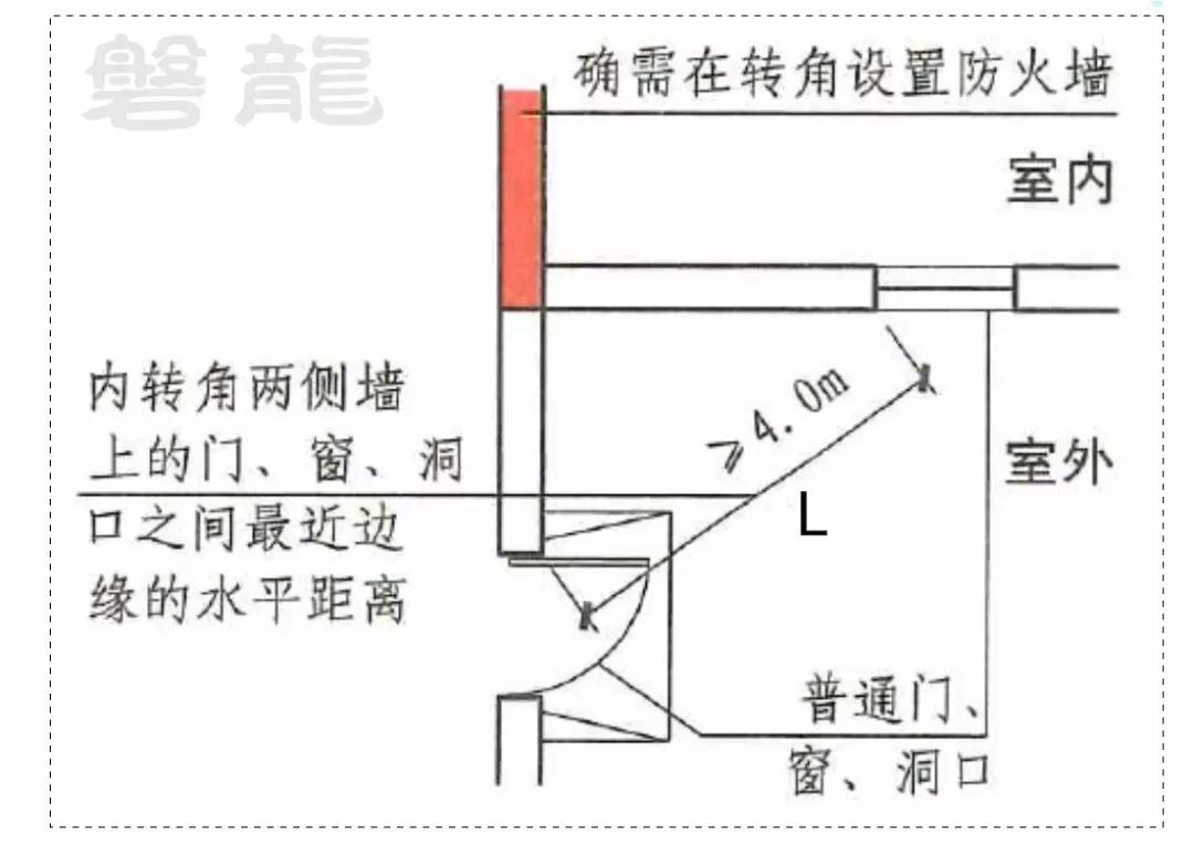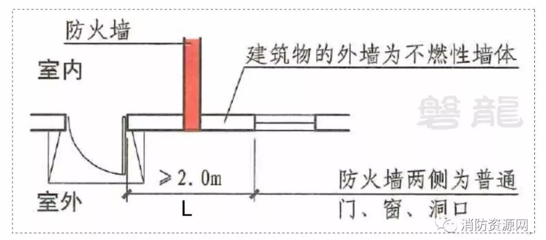 3、示例7的防火墻,兩個(gè)門(mén)窗洞口之間L≥2m