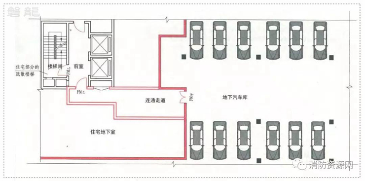 2、除第1項(xiàng)所述情況形外,汽車庫(kù)不得借用民用建筑的疏散樓梯。五、規(guī)范爭(zhēng)議:汽車庫(kù)防火分區(qū)之間,以及汽車庫(kù)和其他民用建筑部分,能否共用疏散樓梯?