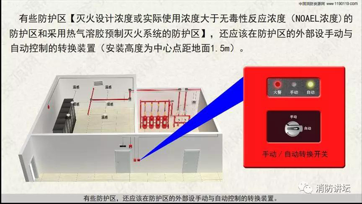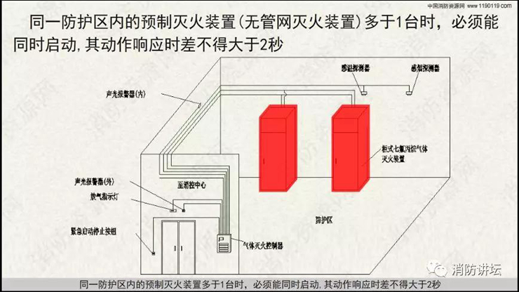 五、規(guī)范中沒有明確氣體滅火控制器的安裝位置,有些人參照防火門控制器的要求布置在消防控制室,這是不太適當(dāng)?shù)?,氣體滅火著重于現(xiàn)場控制管理,在本視頻對氣體滅火控制器的安裝位置進(jìn)行了詳細(xì)說明。