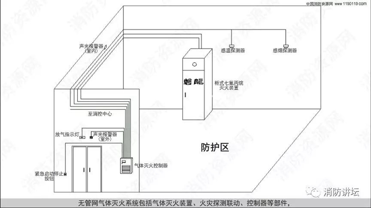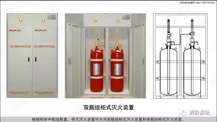 氣體滅火分為有管網(wǎng)滅火系統(tǒng)和無(wú)管網(wǎng)滅火系統(tǒng)! 無(wú)管網(wǎng)滅火系統(tǒng)又稱(chēng)為預(yù)制滅火系統(tǒng),分為懸掛式、柜式滅火系統(tǒng),概念糾結(jié),這里一次性講清楚了