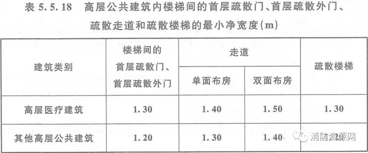 、根據(jù)《建筑設(shè)計(jì)防火規(guī)范》要求(5.5.18):除規(guī)范另有規(guī)定外,公共建筑內(nèi)疏散門(mén)和安全出口的凈寬度不應(yīng)小于0.90m,疏散走道和疏散樓梯的凈寬度不應(yīng)小于1.10m。高層公共建筑內(nèi)樓梯間的首層疏散門(mén)、首層疏散外門(mén)、疏散走道和疏散樓梯的最小凈寬度應(yīng)符合表5.5.18的規(guī)定。
