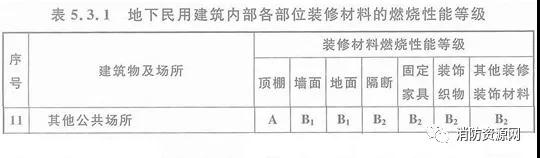 3、地下宿舍建筑內(nèi)部各部位裝修材料的燃燒性能等級,不應低于《建筑內(nèi)部裝修設(shè)計防火規(guī)范》5.3.1規(guī)定: